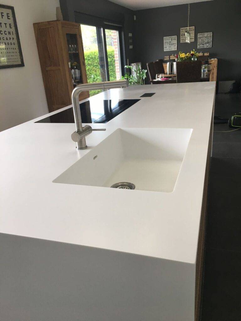 High-precision fabrication using certified Corian and solid surface materials.